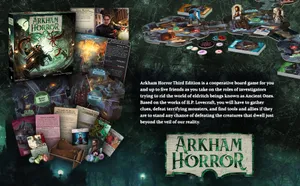Arkham Horror: The Card Game is a cooperative Living Card Game where players take on the roles of investigators exploring the mysterious and dangerous world of H.P. Lovecraft's Cthulhu Mythos. Players build unique decks for their investigators and work together through campaign scenarios, making choices that have lasting consequences on the story.