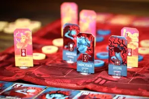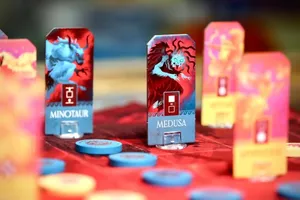 Ichor is an asymmetric strategy game where one player controls Greek gods while the other commands mythological monsters in a battle for supremacy. Each character has unique once-per-game abilities, creating varied gameplay with strategic depth similar to games like Santorini.