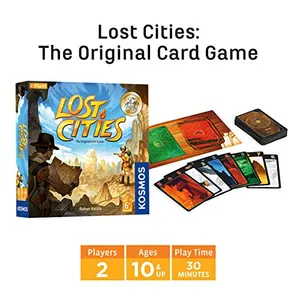 Lost Cities is a tense two-player card game where players mount archaeological expeditions to five different colored destinations. Players must play cards in ascending numerical order while deciding whether to start expeditions or risk waiting for better cards, creating challenging risk-reward decisions.