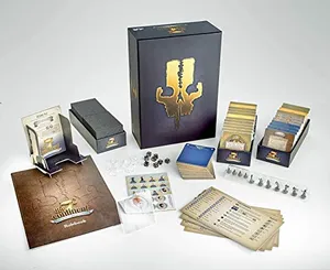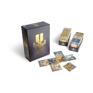 A solo or cooperative choose-your-own-adventure exploration board game where players journey through a mysterious continent to lift a deadly curse. The game uses a card-based system without dice, requiring careful hand management and resource optimization across potentially hundreds of hours of gameplay.
